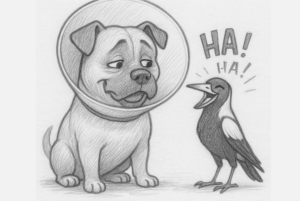 Peggy and Ruby are confused by things going missing around the house until they find Molly is displaying a new behaviour – trying to make a nest. He can’t help it – don’t all dogs do it? Not wanting to make Molly feel strange, Peggy and Ruby decide to pitch in and help by gathering nesting materials at the tip (sneaking past the feral cats) and selecting the best place to build a nest that can fit two dogs and a bird. Easy… right?